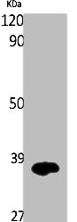 • Western Blot analysis of K562 cells using IL-12A p35 Polyclonal Antibody