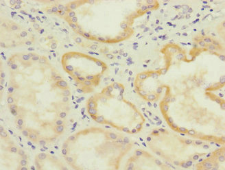 • Immunohistochemistry of paraffin-embedded human kidney tissue using CSB-PA882088ESR2HU at dilution of 1:100