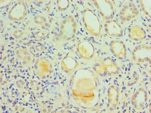 • Immunohistochemistry of paraffin-embedded human kidney tissue using CSB-PA011621ESR1HU at dilution of 1:100