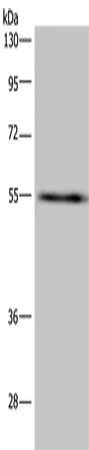 Gel: 8%SDS-PAGE, Lysate: 40 μg, Lane: A549 cells, Primary antibody: CSB-PA914299(IMPDH2 Antibody) at dilution 1/650, Secondary antibody: Goat anti rabbit IgG at 1/8000 dilution, Exposure time: 3 minutes