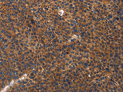 The image on the left is immunohistochemistry of paraffin-embedded Human liver cancer tissue using CSB-PA219130(ITGB3 Antibody) at dilution 1/20, on the right is treated with fusion protein. (Original magnification: ×200)