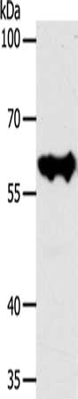 • Gel: 8%SDS-PAGE, Lysate: 40 μg, Lane: MCF7 cells, Primary antibody: CSB-PA445987(KRT10 Antibody) at dilution 1/300, Secondary antibody: Goat anti rabbit IgG at 1/8000 dilution, Exposure time: 30 seconds