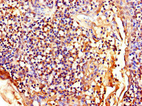 Immunohistochemistry of paraffin-embedded human lymph node tissue using CSB-PA012856LA01HU at dilution of 1:100