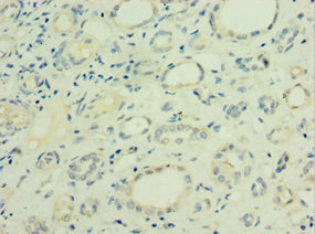 Immunohistochemistry of paraffin-embedded human kidney tissue using CSB-PA012895ESR2HU at dilution of 1:100