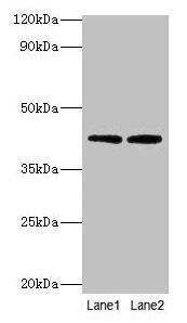 Observed band size: 42 kDa -