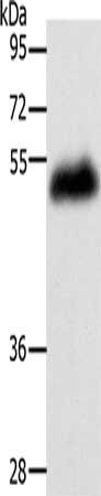 • Gel: 10%SDS-PAGE, Lysate: 60 μg, Lane: Human leiomyosarcoma tissue, Primary antibody: CSB-PA061510(LOX Antibody) at dilution 1/400, Secondary antibody: Goat anti rabbit IgG at 1/8000 dilution, Exposure time: 20 seconds