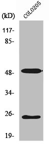 • Western Blot analysis of COLO205 cells using LRAT Polyclonal Antibody