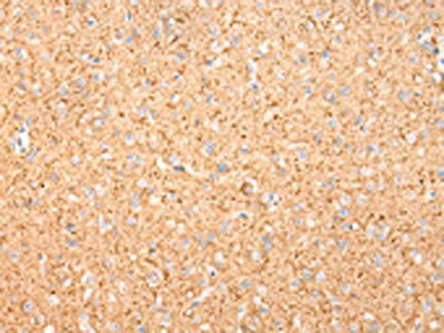 The image on the left is immunohistochemistry of paraffin-embedded Human brain tissue using CSB-PA901991(MAP2 Antibody) at dilution 1/20, on the right is treated with fusion protein. (Original magnification: ×200)