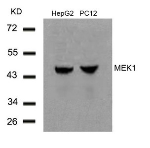 免疫原:Peptide sequence around aa. 289~293 (P-R-T-P-G) derived from Human MEK1.