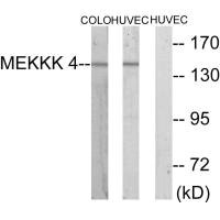 免疫原:Synthesized peptide derived from internal of Human MEKKK 4.