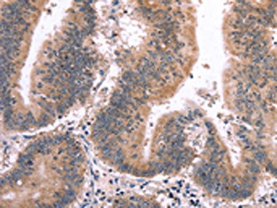 • The image on the left is immunohistochemistry of paraffin-embedded Human colon cancer tissue using CSB-PA299002(MAPK13 Antibody) at dilution 1/15, on the right is treated with synthetic peptide. (Original magnification: ×200)