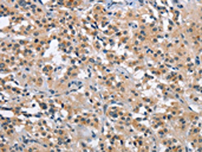 • The image on the left is immunohistochemistry of paraffin-embedded Human thyroid cancer tissue using CSB-PA029620(MAPT Antibody) at dilution 1/40, on the right is treated with synthetic peptide. (Original magnification: ×200)