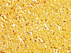 • IHC image of CSB-PA013585LA01HU diluted at 1:200 and staining in paraffin-embedded human brain tissue performed on a Leica BondTM system. After dewaxing and hydration, antigen retrieval was mediated by high pressure in a citrate buffer (pH 6.0). Section was blocked with 10% normal goat serum 30min at RT. Then primary antibody (1% BSA) was incubated at 4°C overnight. The primary is detected by a biotinylated secondary antibody and visualized using an HRP conjugated SP system.