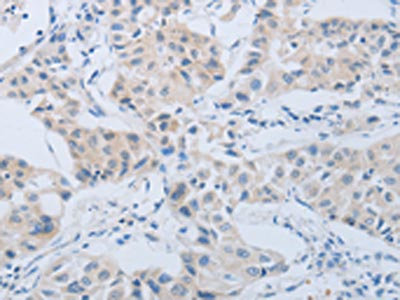 The image on the left is immunohistochemistry of paraffin-embedded Human lung cancer tissue using CSB-PA086078(MME Antibody) at dilution 1/45, on the right is treated with synthetic peptide. (Original magnification: ×200)