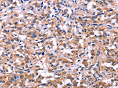 • The image on the left is immunohistochemistry of paraffin-embedded Human thyroid cancer tissue using CSB-PA971298(MMP14 Antibody) at dilution 1/40, on the right is treated with fusion protein. (Original magnification: ×200)