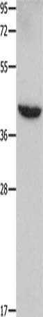 • Gel: 12%SDS-PAGE, Lysate: 30 μg, Lane: Mouse heart tissue, Primary antibody: CSB-PA594142(MMP28 Antibody) at dilution 1/350, Secondary antibody: Goat anti rabbit IgG at 1/8000 dilution, Exposure time: 40 seconds