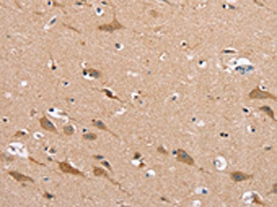 The image on the left is immunohistochemistry of paraffin-embedded Human brain tissue using CSB-PA301850(MSMB Antibody) at dilution 1/30, on the right is treated with fusion protein. (Original magnification: ×200)