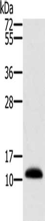 Gel: 10%SDS-PAGE, Lysate: 40 μg, Lane: Human prostate tissue, Primary antibody: CSB-PA301850(MSMB Antibody) at dilution 1/250, Secondary antibody: Goat anti rabbit IgG at 1/8000 dilution, Exposure time: 1 second