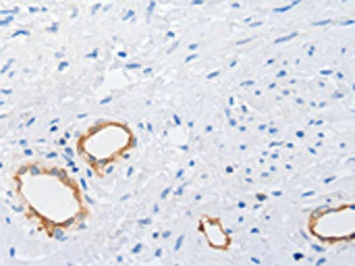 The production of the MUC5AC antibody is based on the immunization of rabbits with the synthetic peptide of human MUC5AC and subsequent antigen affinity-mediated purification from the resulting anti-serum. It is a polyclonal antibody and occurs as an unconjugated IgG. It only reacts with human MUC5AC protein. This MUC5AC antibody has been validated for use in ELISA and IHC analyses. The target protein MUC5AC is major gel-forming mucin involved in barrier functions to epithelial cells, host–pathogen interaction, immune cell attraction to sites of premalignant or malignant lesions, and tumor progression in a context-dependent manner.