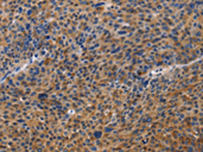 • The image on the left is immunohistochemistry of paraffin-embedded Human liver cancer tissue using CSB-PA989887(MUSK Antibody) at dilution 1/40, on the right is treated with fusion protein. (Original magnification: ×200)