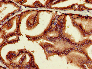 Immunohistochemistry of paraffin-embedded human prostate cancer using CSB-PA02589A0Rb at dilution of 1:100