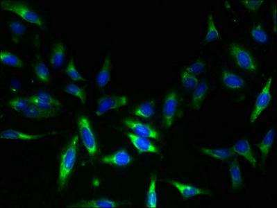 • Immunofluorescent analysis of Hela cells using CSB-PA887033LA01HU at dilution of 1:100 and Alexa Fluor 488-congugated AffiniPure Goat Anti-Rabbit IgG(H+L)