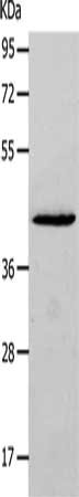 Gel: 10%SDS-PAGE, Lysate: 40 μg, Lane: Mouse thymus tissue, Primary antibody: CSB-PA126963(NCK2 Antibody) at dilution 1/900, Secondary antibody: Goat anti rabbit IgG at 1/8000 dilution, Exposure time: 15 seconds