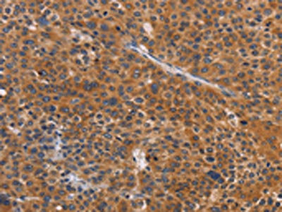 The image on the left is immunohistochemistry of paraffin-embedded Human liver cancer tissue using CSB-PA923766(NCR1 Antibody) at dilution 1/30, on the right is treated with synthetic peptide. (Original magnification: ×200)
