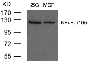 • Western blot analysis of extracts from 293 and MCF cells using NFkB-p105(Ab-907) Antibody.