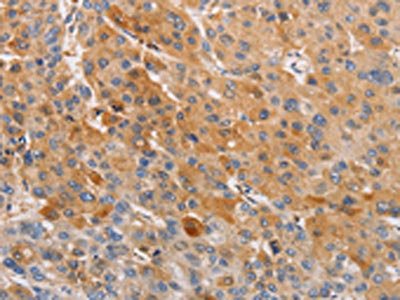 The image on the left is immunohistochemistry of paraffin-embedded Human liver cancer tissue using CSB-PA133010(OLR1 Antibody) at dilution 1/50, on the right is treated with fusion protein. (Original magnification: ×200)