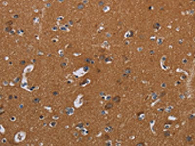 • The image on the left is immunohistochemistry of paraffin-embedded Human brain tissue using CSB-PA066346(OMG Antibody) at dilution 1/30, on the right is treated with synthetic peptide. (Original magnification: ×200)