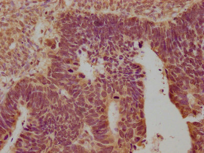 • IHC image of CSB-PA016359OA01HU diluted at 1:100 and staining in paraffin-embedded human ovarian cancer performed on a Leica BondTM system. After dewaxing and hydration, antigen retrieval was mediated by high pressure in a citrate buffer (pH 6.0). Section was blocked with 10% normal goat serum 30min at RT. Then primary antibody (1% BSA) was incubated at 4°C overnight. The primary is detected by a biotinylated secondary antibody and visualized using an HRP conjugated SP system.