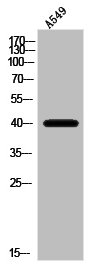 • Western Blot analysis of A549 cells using Olfactory receptor 10V1 Polyclonal Antibody