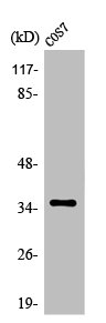 • Western Blot analysis of HuvEc cells using Olfactory receptor 4K14 Polyclonal Antibody
