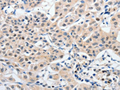 • The image on the left is immunohistochemistry of paraffin-embedded Human lung cancer tissue using CSB-PA977071(P2RY6 Antibody) at dilution 1/80, on the right is treated with synthetic peptide. (Original magnification: ×200)