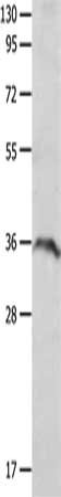 • Gel: 10%SDS-PAGE, Lysate: 40 μg, Lane: Mouse spleen tissue, Primary antibody: CSB-PA977071(P2RY6 Antibody) at dilution 1/650, Secondary antibody: Goat anti rabbit IgG at 1/8000 dilution, Exposure time: 1 minute