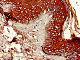 Immunohistochemistry of paraffin-embedded human skin tissue using CSB-PA017339LA01HU at dilution of 1:100