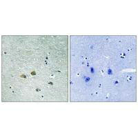Immunohistochemistry analysis of paraffin-embedded human brain tissue using PAK1 (Ab-204) antibody.