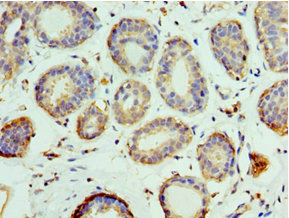 Immunohistochemistry of paraffin-embedded human breast cancer using CSB-PA856932ESR1HU at dilution of 1:100