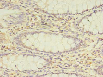 • Immunohistochemistry of paraffin-embedded human colon cancer using CSB-PA017796LA01HU at dilution of 1:100