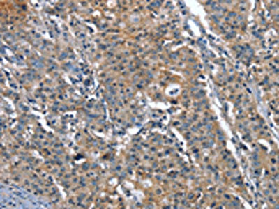 The image on the left is immunohistochemistry of paraffin-embedded Human gastric cancer tissue using CSB-PA202119(PLA2G6 Antibody) at dilution 1/15, on the right is treated with synthetic peptide. (Original magnification: ×200)