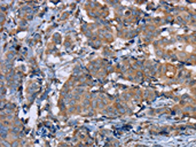 The image on the left is immunohistochemistry of paraffin-embedded Human breast cancer tissue using CSB-PA927936(PON1 Antibody) at dilution 1/40, on the right is treated with synthetic peptide. (Original magnification: ×200)