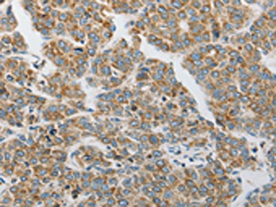 The image on the left is immunohistochemistry of paraffin-embedded Human liver cancer tissue using CSB-PA912013(PRDX1 Antibody) at dilution 1/20, on the right is treated with synthetic peptide. (Original magnification: ×200)