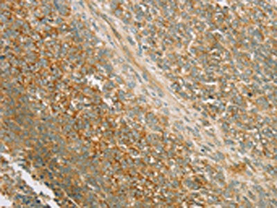 The image on the left is immunohistochemistry of paraffin-embedded Human esophagus cancer tissue using CSB-PA071831(PRKAA1 Antibody) at dilution 1/80, on the right is treated with synthetic peptide. (Original magnification: ×200)