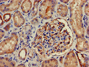 Immunohistochemistry of paraffin-embedded human kidney tissue using CSB-PA018713LA01HU at dilution of 1:100