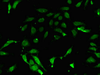Immunofluorescent analysis of Hela cells using CSB-PA885738LA01HU at dilution of 1:100 and Alexa Fluor 488-congugated AffiniPure Goat Anti-Rabbit IgG(H+L)