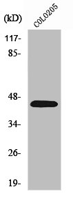 • Western Blot analysis of COLO205 cells using PKR1 Polyclonal Antibody