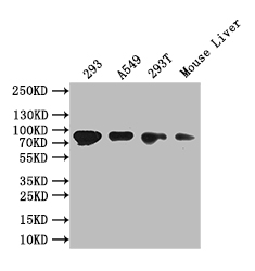 Positive WB detected in: 293 whole cell lysate, A549 whole cell lysate, 293T whole cell lysate,Mouse Liver tissue lysate