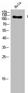 • Western Blot analysis of Hela cells using Phospho-Flg (Y654) Polyclonal Antibody
