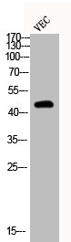 • Western Blot analysis of VEC cells using Phospho-MEK-2 (T394) Polyclonal Antibody